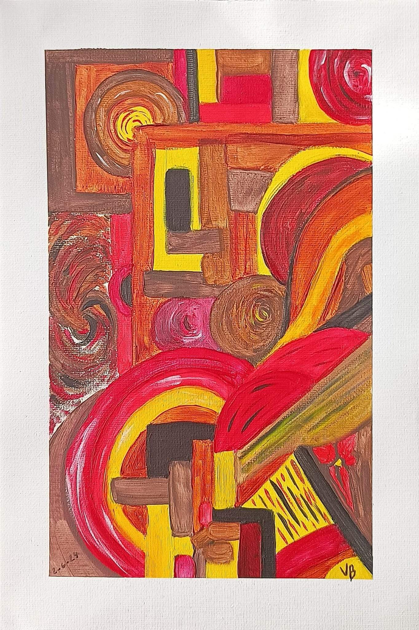 Besoin d'évacuer des ondes négatives, je me mets alors devant une page blanche, je choisis une gamme de couleur que j'affectionne beaucoup et je me laisse guider par les émotions du moment.