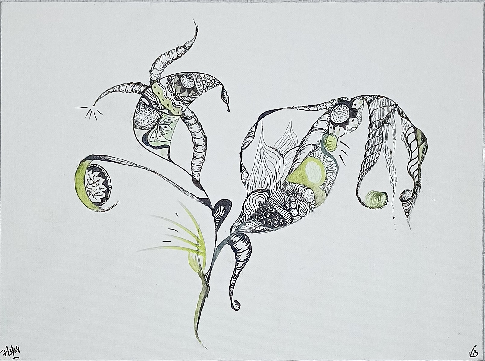 Envie d'un moment de détente. J'ai pris mes feutres et j'ai laissé faire mon imagination. Le résultat est un mélange harmonieux entre racines tortueuses et le vert apaisant.