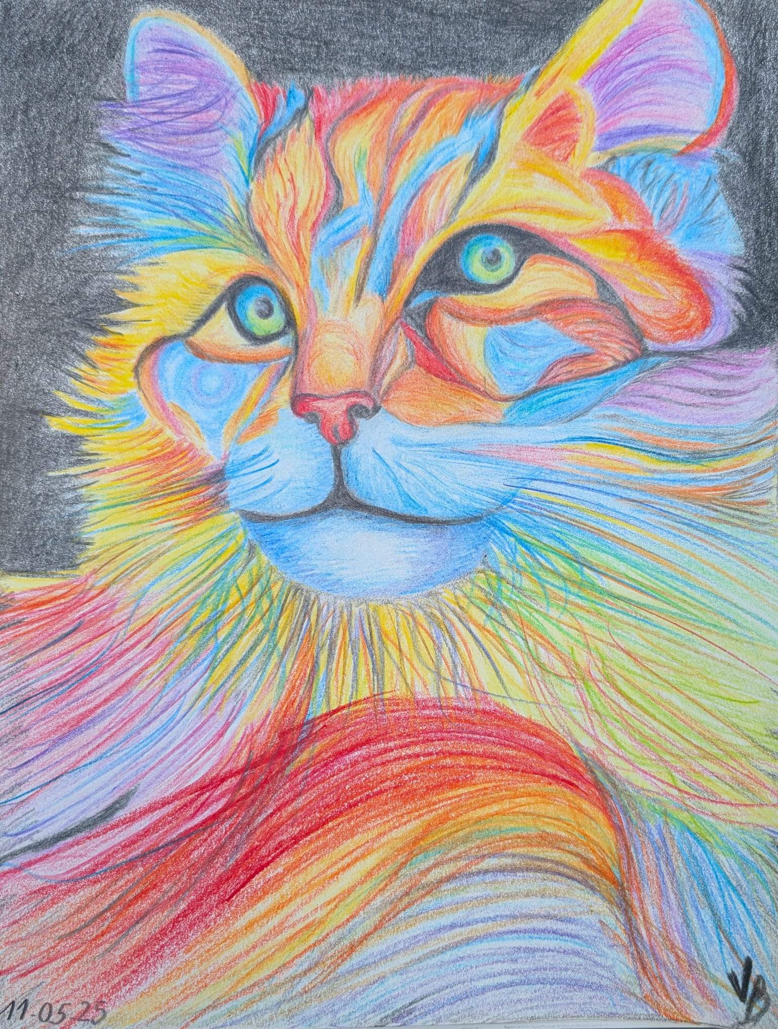 Inspiration du moment. Pas de pinceau et de peinture à disposition alors j'ai utilisé mes crayons de couleur :)